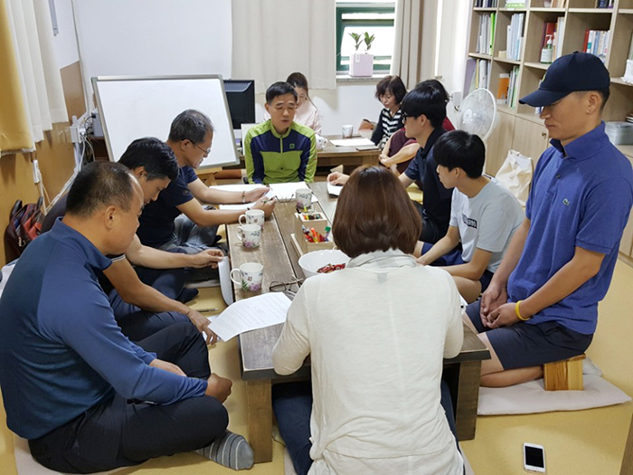 고요한소리 대전지부의 일요일 니까야 읽기반에서 열심히 공부하는 모습입니다.
