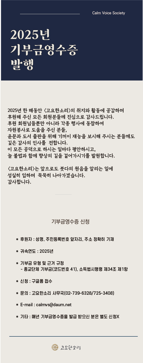 2025년 기부금영수증 발급 신청 관리자 2025-12-31 조회수 : 10 첨부파일: 2025 기부금영수증 발행 .png 2025 기부금영수증 신청하기https://forms.gle/xZqd9p1vv9zkgzfH7