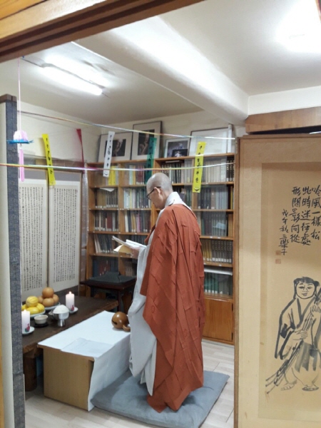 증명단 예불 올리는 중