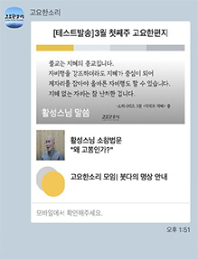 고요한소리의 다양한 소식들도 나누고, 회원님들과 소통 하기 위해서 마련하였으니 아래 ‘고요한편지 구독하기’를 클릭하셔서 ‘〈고요한소리〉 카카오톡 채널’ 친구 등록을 부탁드립니다.